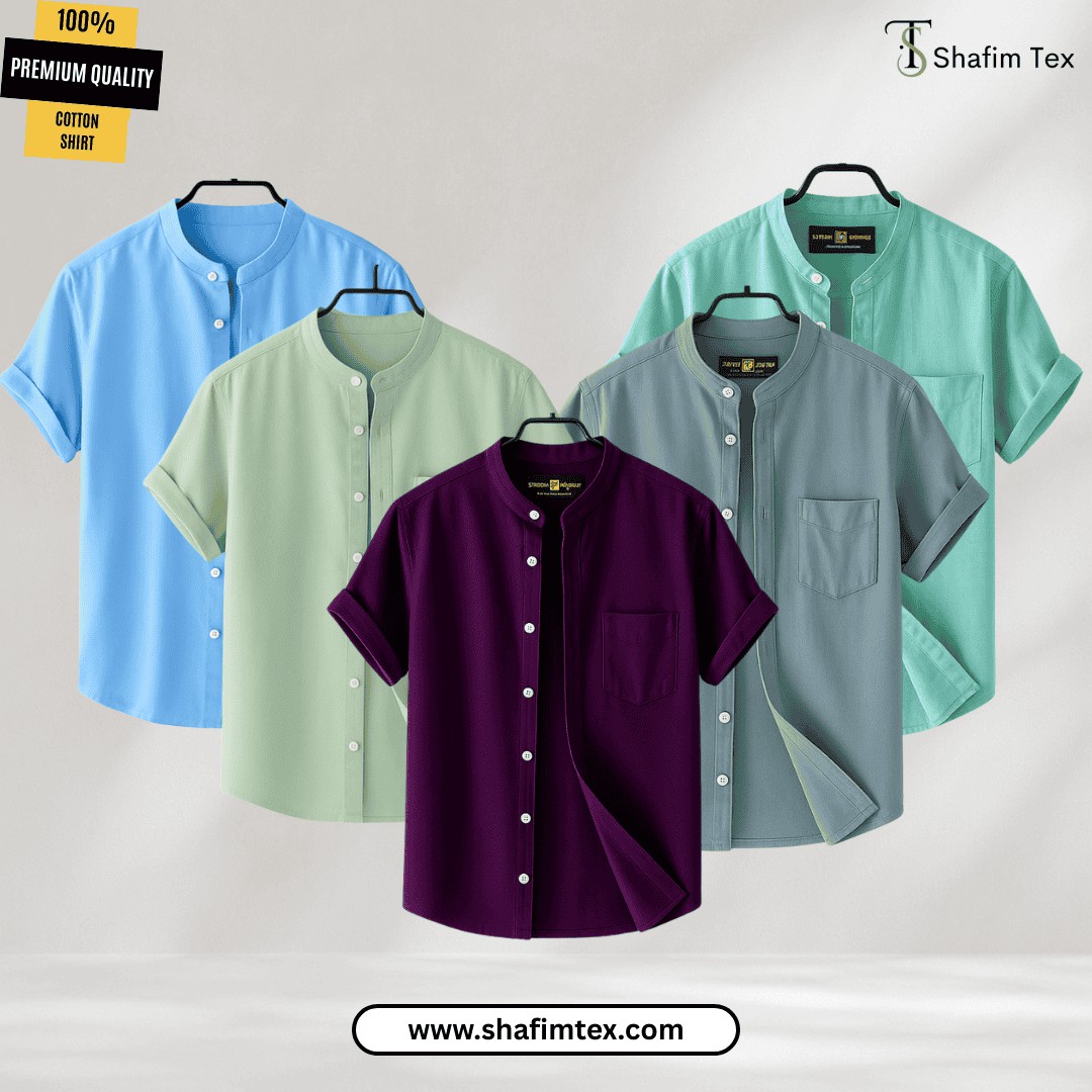 Men's Ban Collar half sleeve Shirt (Sky+Lemon+Zam+Ash+Fest) - 1152