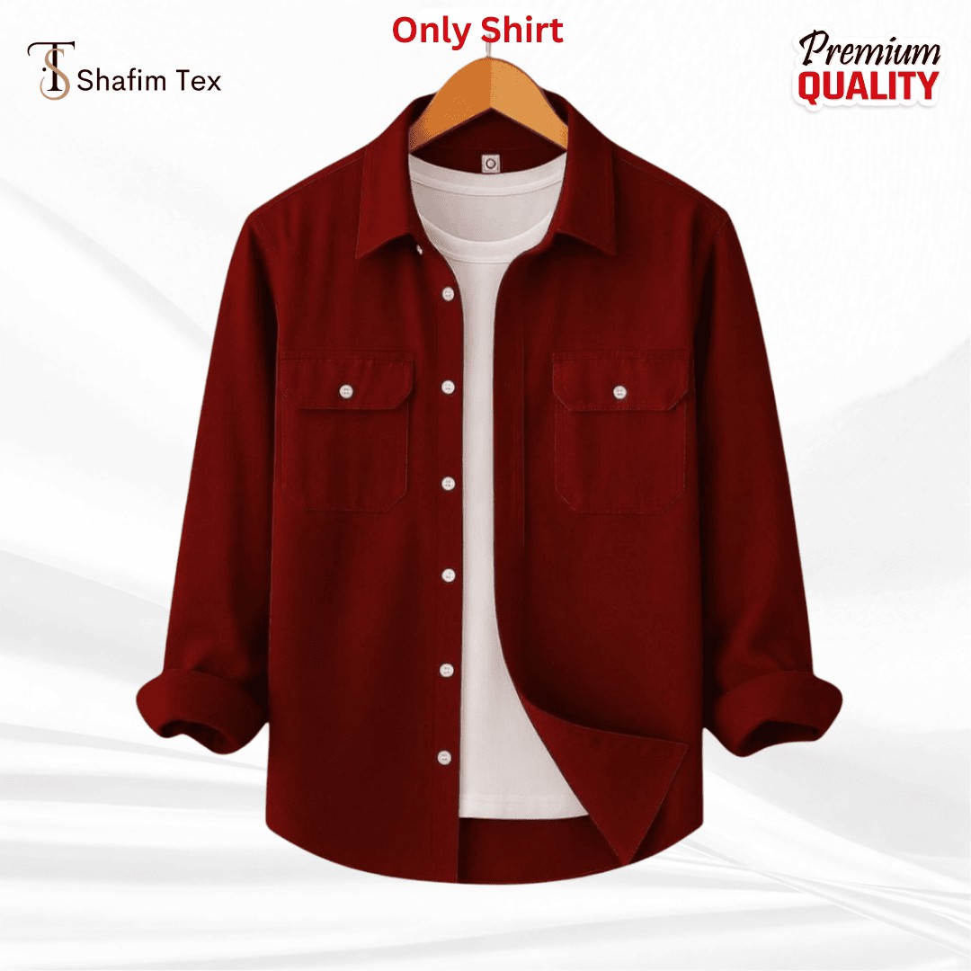 Long Sleeve Double Pocket Shirt (Merun) - 1307