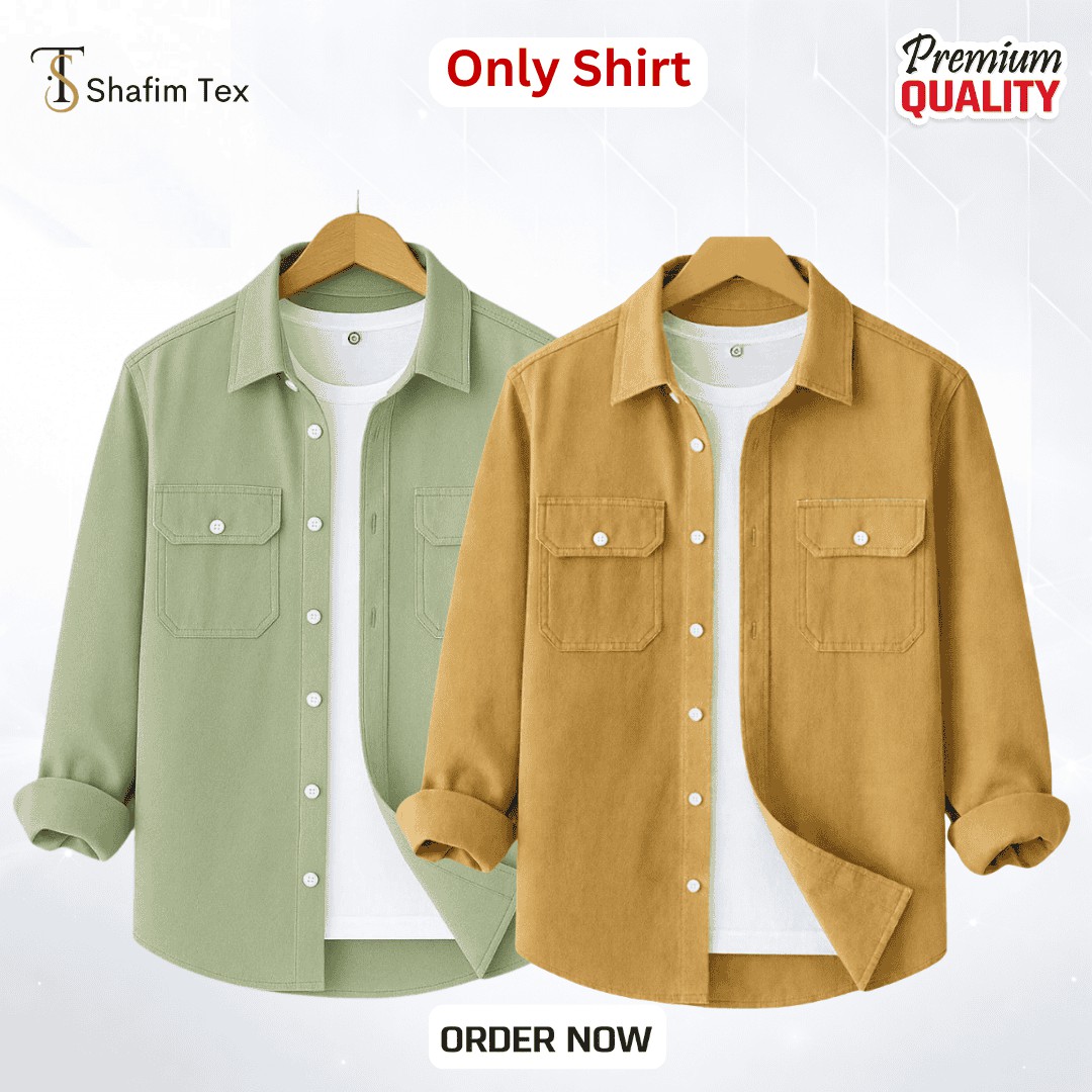 Long Sleeve Double Pocket Shirt (Lemon+khaki) - 1309