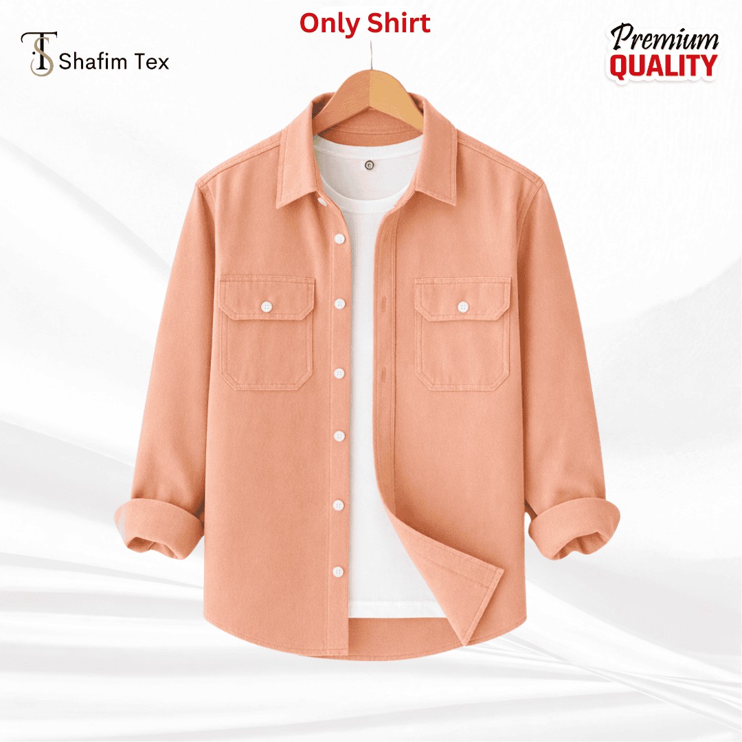 Long Sleeve Double Pocket Shirt (Pink) - 1312